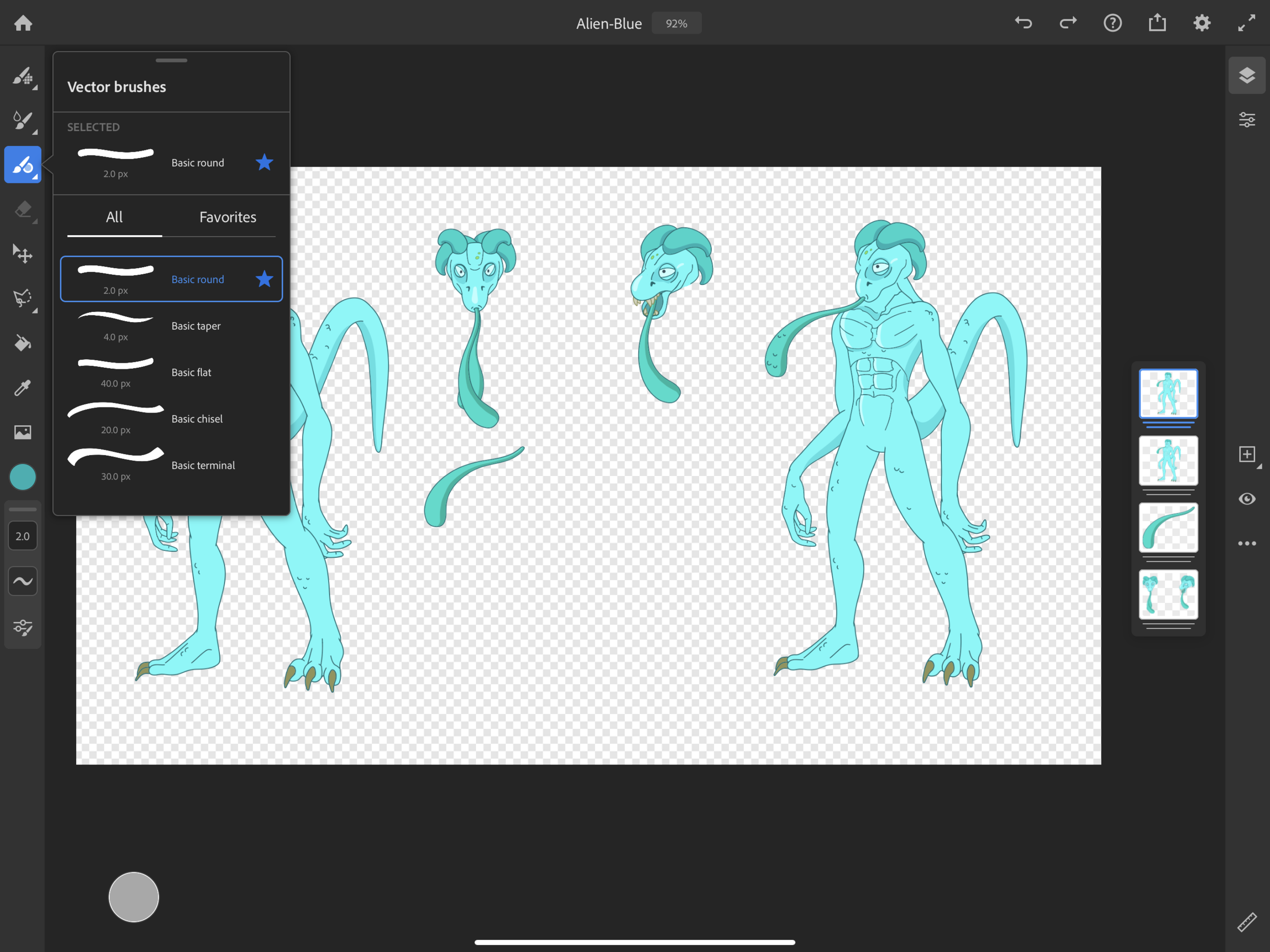 Ensure you are illustrating with the VECTOR BRUSH do not use the texture brushes or you won’t be able to keep your project in layers when you export it to Adobe Illustrator