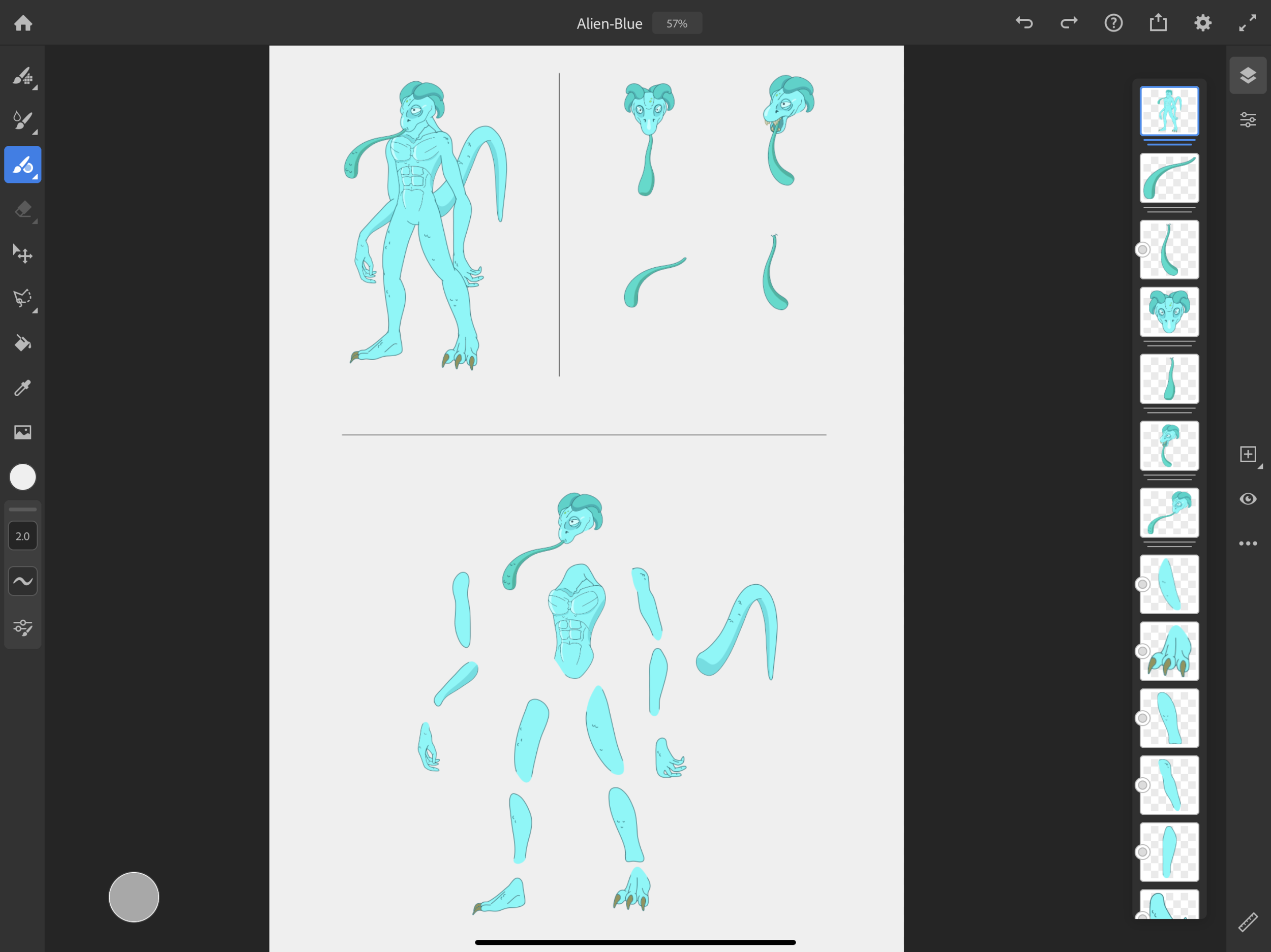 Giving each part it’s own layer allows you to animate each part independently.